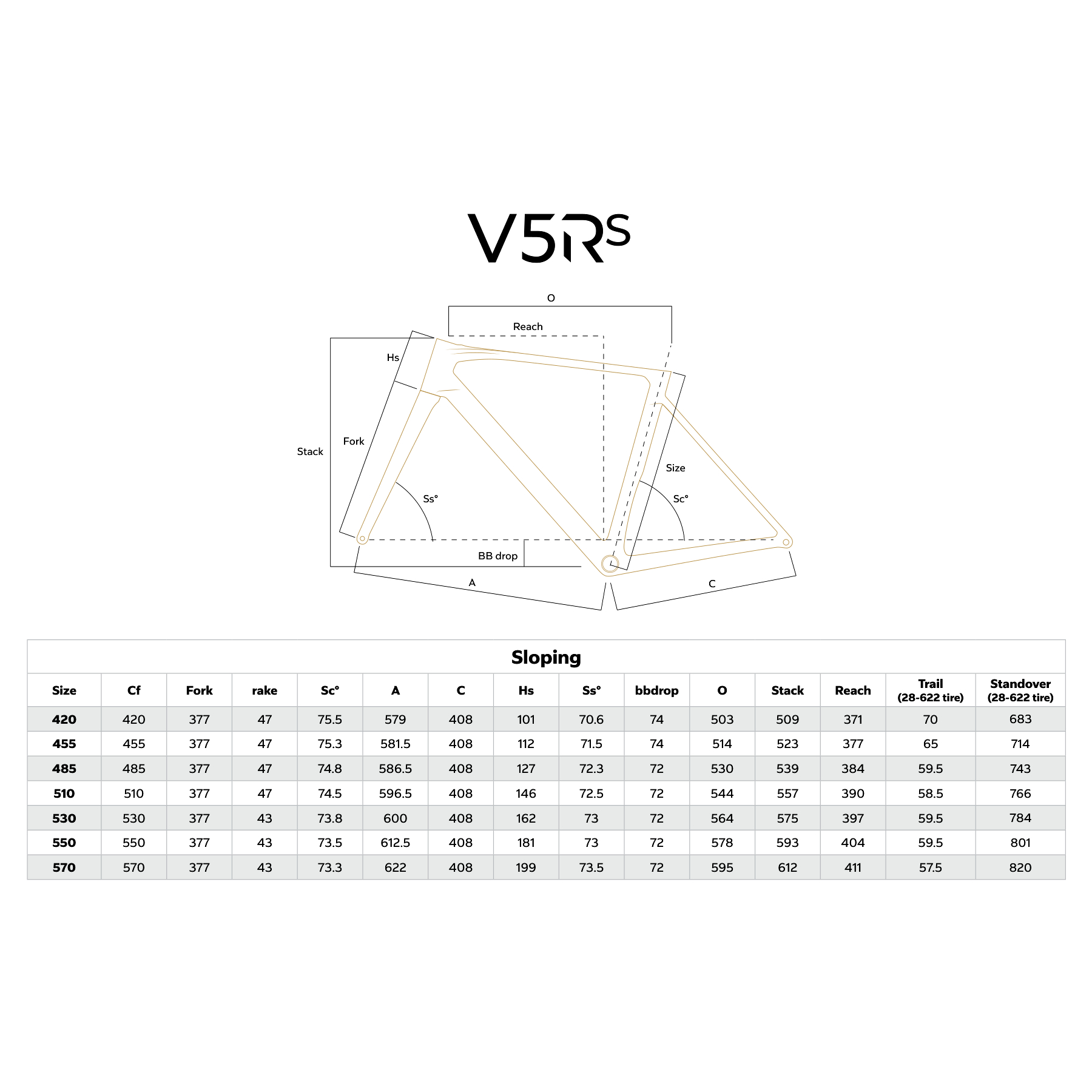 Präziseres Fahren - Das V5Rs verfügt über eine neue, leichtere und präzisere Gabel. Der Reifenfreiheit von 32 mm ermöglicht die Verwendung von breiteren Reifen: mehr Grip, Fahrbarkeit und Geschwindigkeit auf unebenem Gelände.